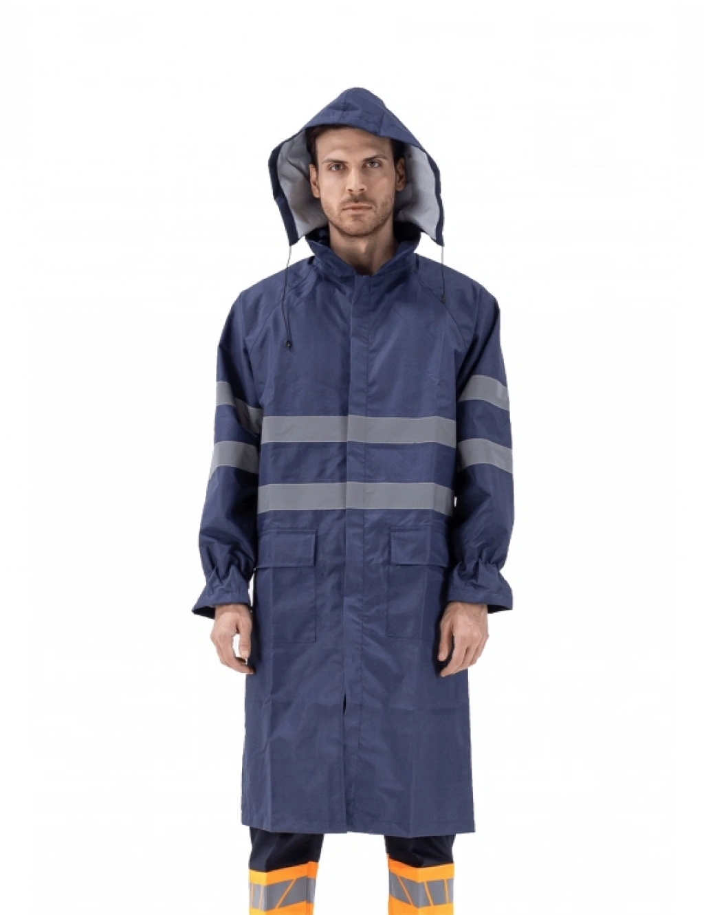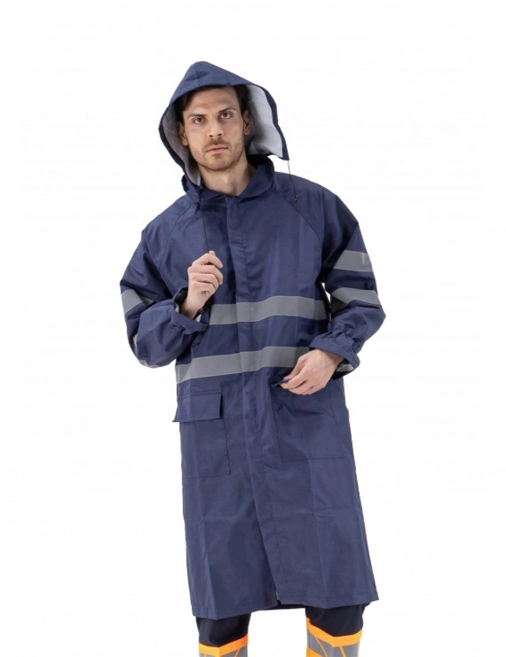 Kumaş Bilgisi 100% Polyester, 150D Oxford Weave PU Kaplamalı, 150 GSM Ürün Özelikleri CE Sertifikalı (EN ISO 13688, EN ISO 17353, EN ISO 343) Portatif, gizli çıkarılabilir kapişonlu ve önden çıtçıtlı Ön sağ ve solda kapaklı cep, cepler çıtçıtlı Ön ve arka kollar iki sıra 5 cm reflektif şerit Elastik manşetler Tüm dikiş yerleri su geçirmez kaynak bantlı Ürün çanta hediyelidi