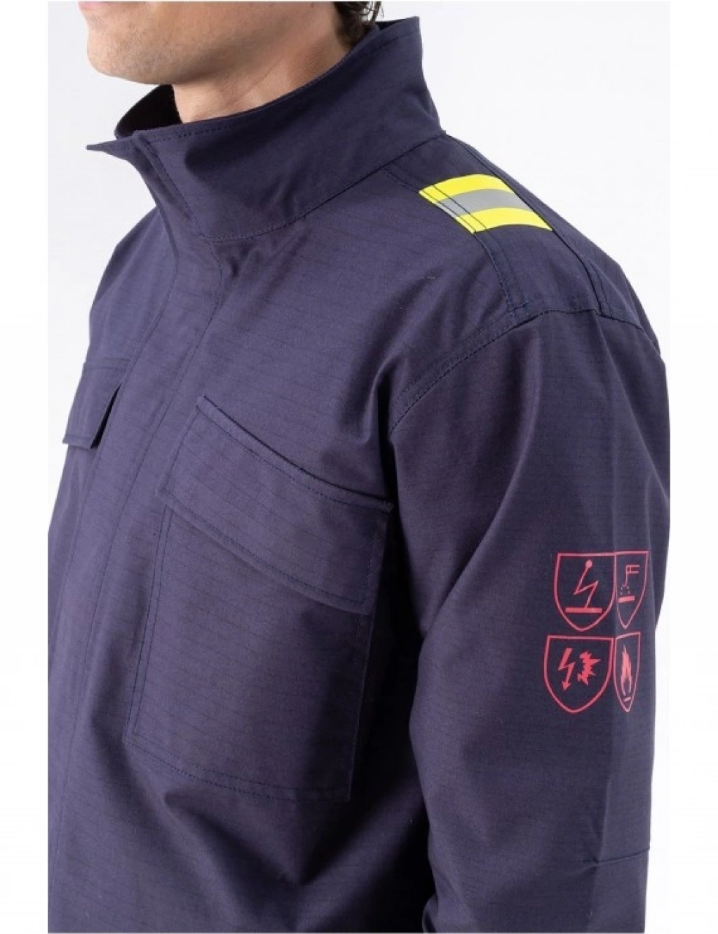 Kumaş Bilgisi Alevalmaz kumaştan imal edilmiştir Ürün Özellikleri CE Sertifikalı (EN ISO 13688:2015, EN ISO 11612:2015 A1A2B1C1E1F1, EN 1149-3:2004, EN ISO 11611:2015 CLASS 1, IEC 61482-2:2018 kA (APC = 1)) Kapaklı göğüs cepleri vardır Yanmaz fermuar kullanılmıştır Yanmaz segmentli reflektör baskı kullanılmıştır