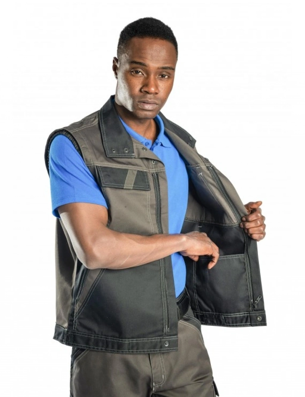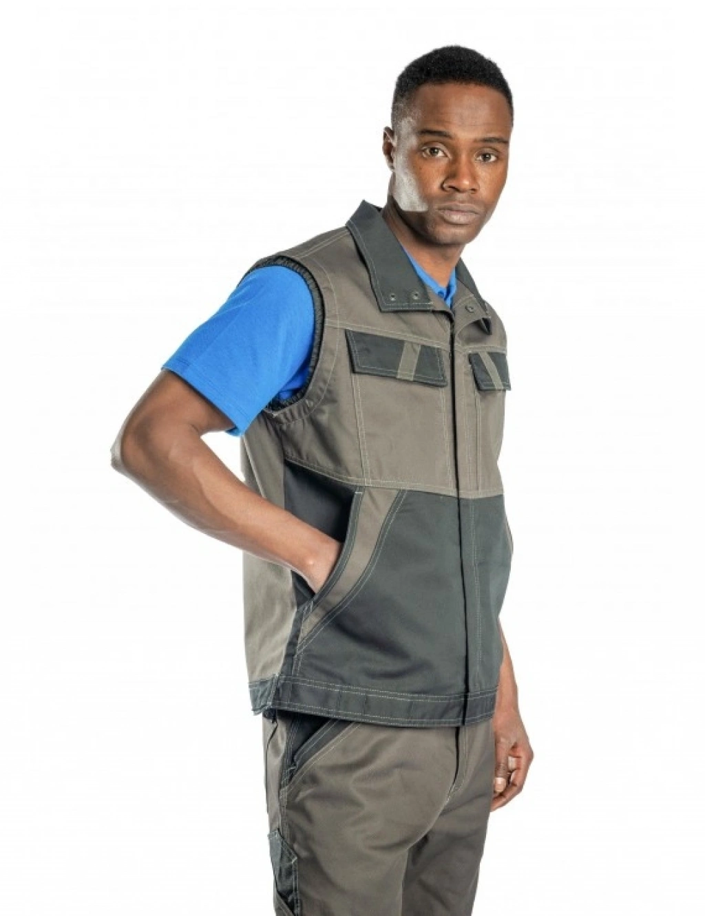 Kumaş Bilgisi %65 Polyester %32 Cotton, %3 Lycra ,300 GSM Ürün Özellikleri Ayarlanabilir Manşetler Kalem Cepleri Fermuarlı Göğüs Cebi Yan Cepler